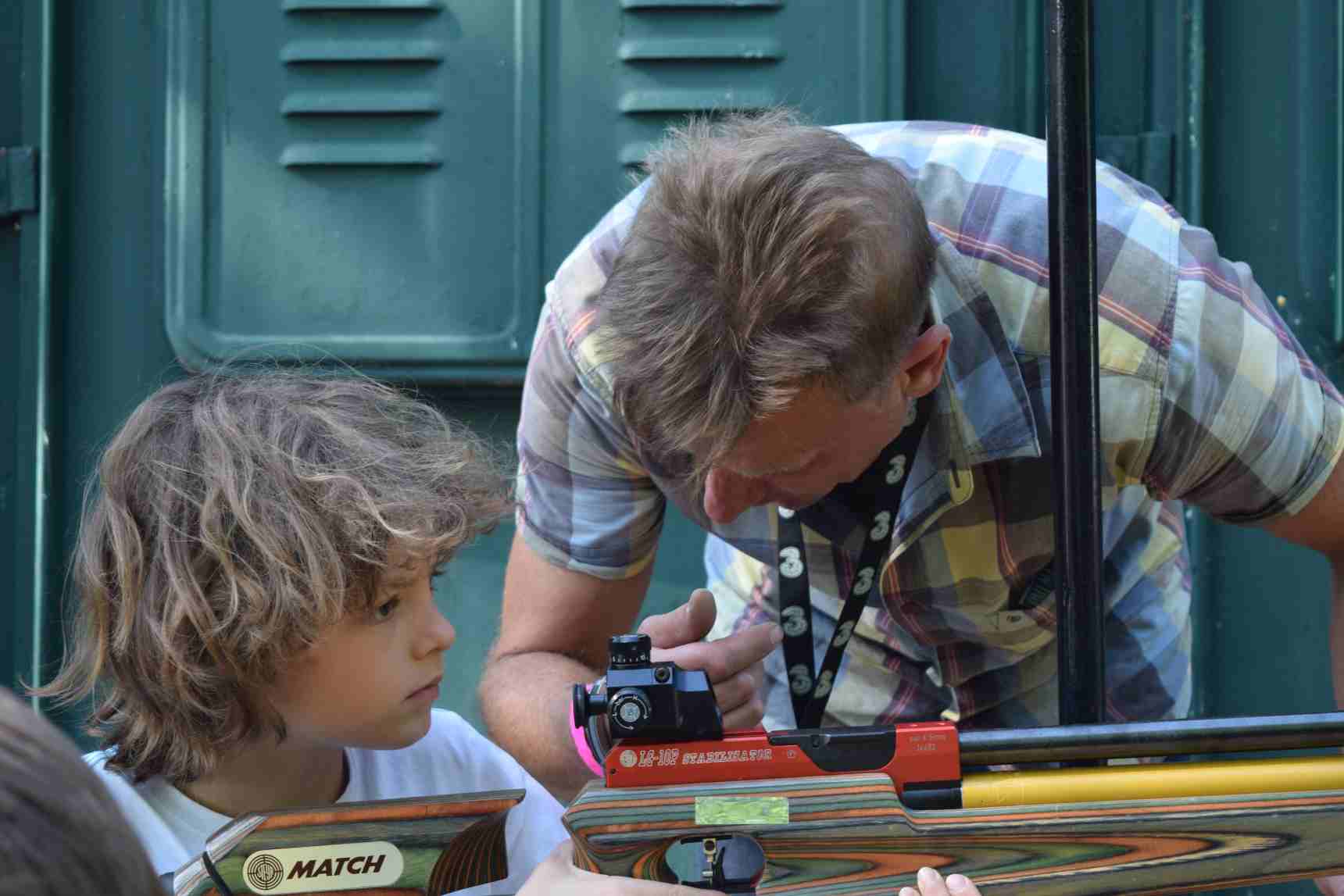 Beim heurigen Sommerfest gab es als Attraktion einen eigenen „Luftpost-Stand“. Mit dem Luftgewehr wurde dort auf Biathlon-Klappscheiben geschossen, an denen die „Luftballonpost“ eingehängt war – Heliumballons samt einem Glückwunschbriefchen mit literarischen Zitaten aus der Welt des Schießens: von Textstellen aus dem „Wilhelm Tell“ über die Parallelen von Zen-Meditation und Bogenschießen bis hin zu Weisheiten aus dem japanischen „Hagakure“, dem Ehrenkodex der Samurai.