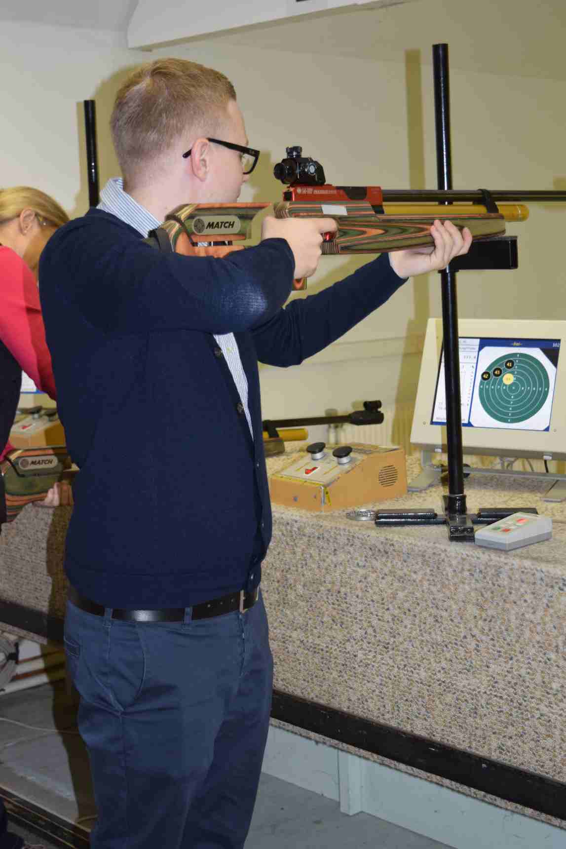 – Das bewiesen acht Mitarbeiterinnen und Mitarbeiter der Controlling-Abteilung der Raiffeisenlandesbank Niederösterreich-Wien. Ihr Besuch in der 10-Meter-Halle für Luftdruckwaffen des Wiener Heeressportvereins am 24. April war nicht der erste sportliche Betriebsausflug der Banker – allerdings der erste, bei dem auch scharf geschossen wurde: Die Gastschützen versuchten sich sowohl am Luftgewehr als auch an der Luftpistole – unter Zuhilfenahme einer Auflage für den Gewehr- bzw. Pistolenschaft.